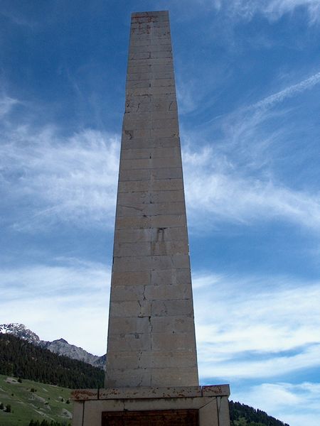 L'obélisque fut détruit à l'explosif en 1835 par les Piémontais et reconstruit par l'architecte Joseph Andreoli sous le Roi Louis Philippe. Les pierres utilisées sont coulées et fichées avec du mortier de chaux et du ciment et liées entre elles par des crampons en fer.