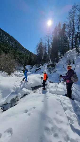 Ici, pas de parcours impersonnels. Chaque balade est pensée comme une parenthèse hors du temps, accessible, progressive et profondément immersive. Forêts enneigées, clairières secrètes, panoramas ouverts sur les sommets franco-italiens… Vous avancez à votre rythme, vous observez, vous respirez, vous vous reconnectez.